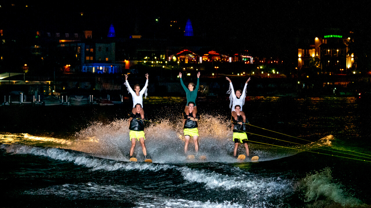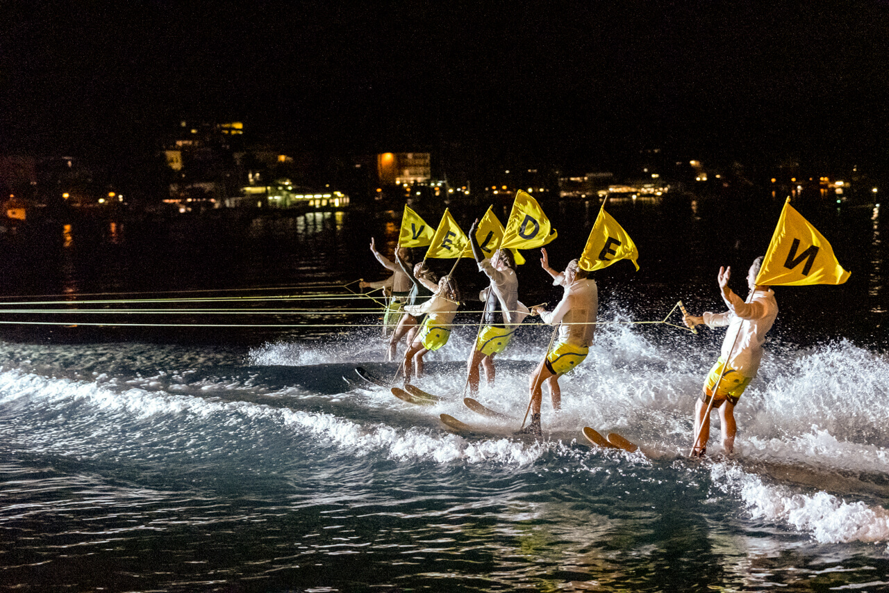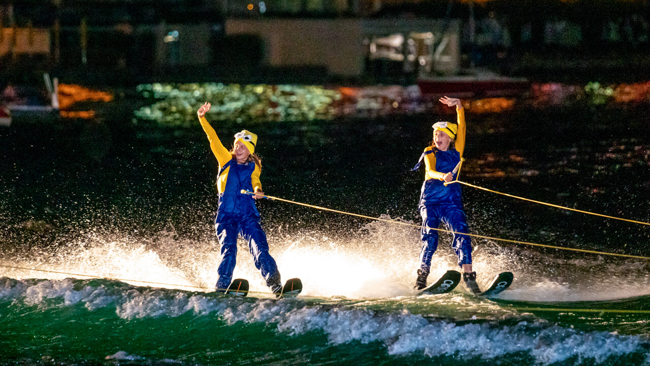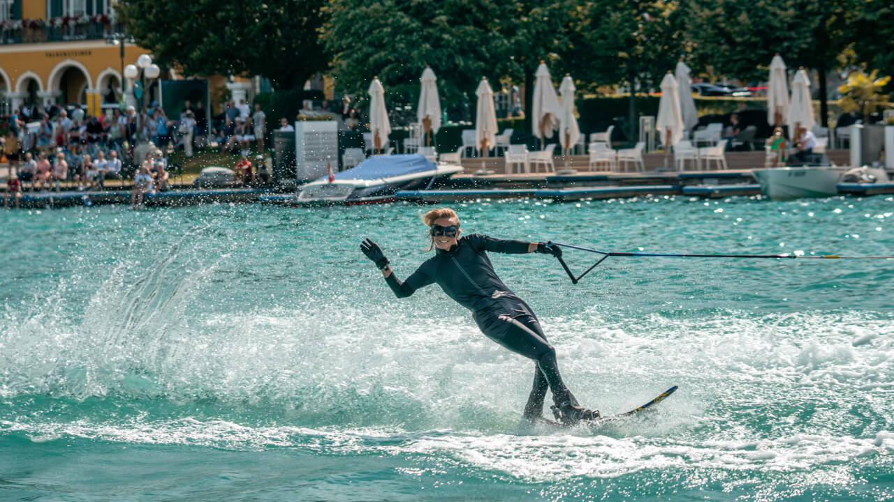 Das spektakulärste Event vor dem Schlosshotel. Die Wasserskishow in Velden, welche direkt vor den malerischen Kulissen des Schlosshotels jährlich bis zu 100.000 Besucher anzieht, beeindruckt jeden Donnerstagabend im Juli und August mit atemberaubenden Stunts am Wasser. Von Jung bis Alt erleben die Zuschauer bei dieser besonderen nächtlichen Vorführung eine spektakuläre Wasserski-Performances. Diese einzigartige Show ist ein Highlight für Wassersportbegeisterte und Familien gleichermaßen.
